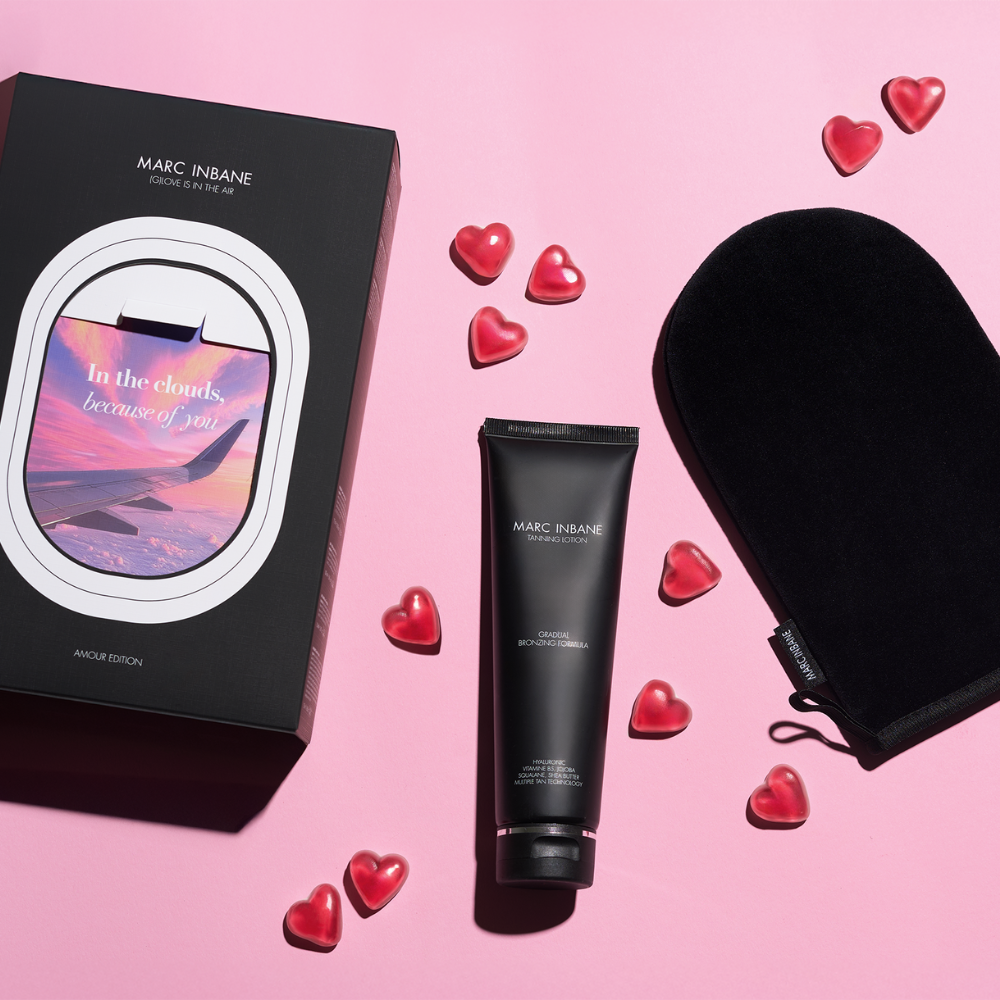 På denne kærlighedsfyldte rejse får du en Glove med ved køb af vores Natural Tanning Spray (175 ml), Hyaluronic Self-Tan Spray (100 ml), Natural Tanning Mousse (175 ml) eller Gradual Tanning Lotion (125 ml).